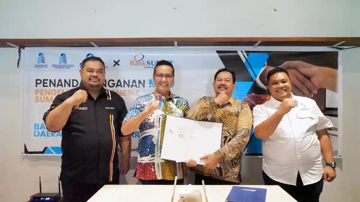 PT Bank Sumut menandatangani Nota Kesepahaman (MoU) dengan Pengembang Indonesia (PI) Sumatera Utara sebagai langkah strategis dalam memperkuat sinergi pembiayaan sektor properti di Sumatera Utara, Sabtu (14/06).